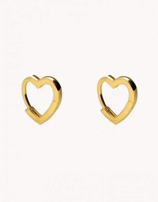 Pendientes de aro de plata de ley 925 bañados en oro con forma de corazón de 8,5 mm de diámetro interior en su zona más ancha y 2 mm de grosor, cierre africano.