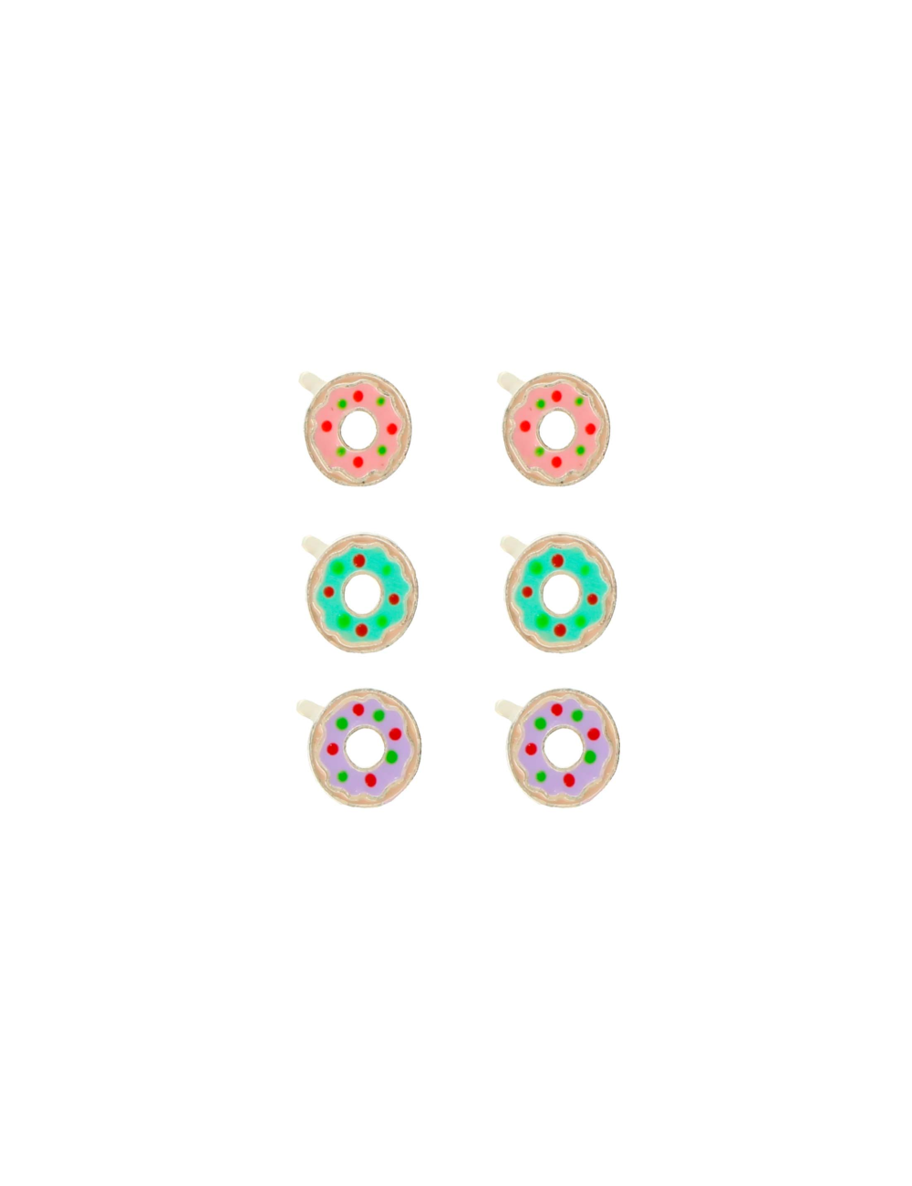 Pendientes de plata de ley 925 con motivo donuts esmaltado con cierre de rosca.