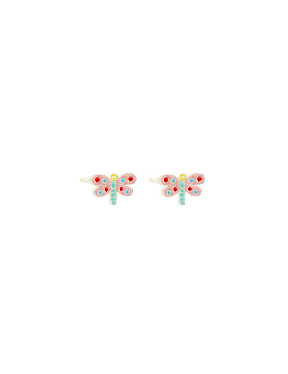 Pendientes de plata de ley 925 con motivo libelula esmaltado con cierre de rosca.