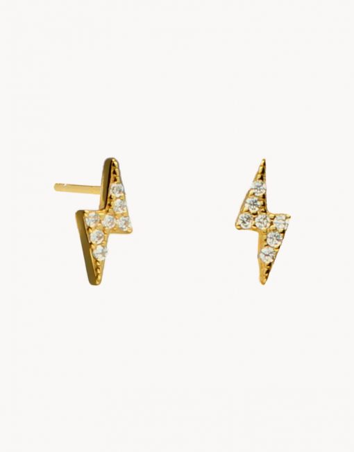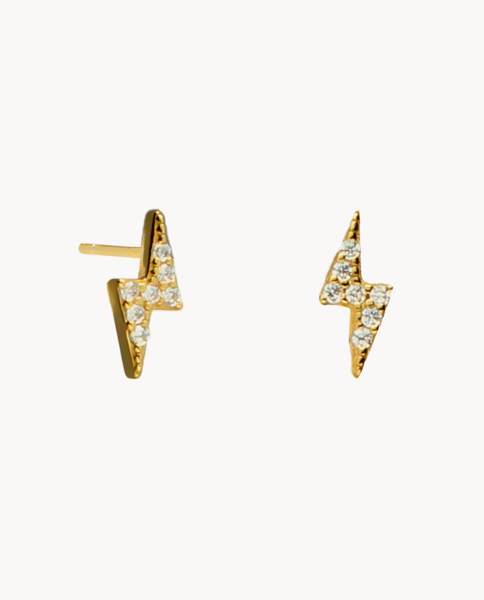 Pendientes de plata de ley 925 bañados en oro motivo rayo con pavé de circonitas blancas, cierre de presión.