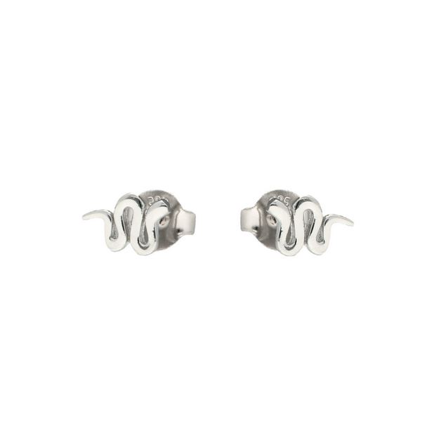 Pendientes de plata de ley 925 bañados en rodio con forma de serpiente de 10 mm de ancho y cierre de presión.
