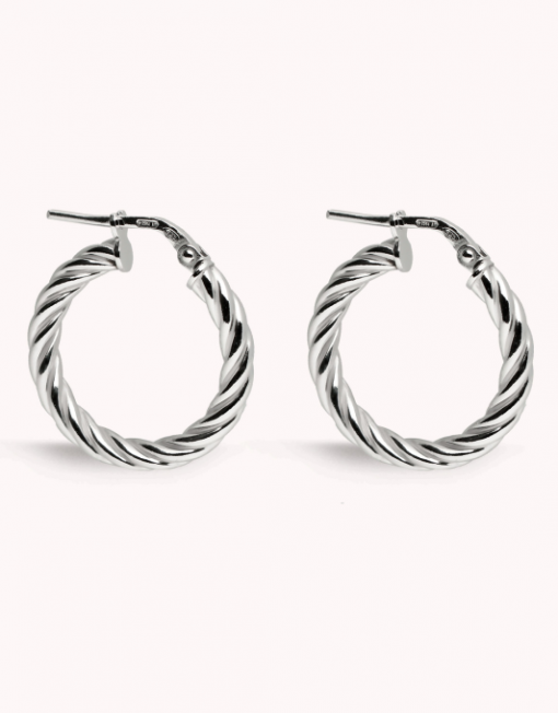 Pendientes de aro de plata de ley 925 bañada en rodio con diseño trenzado de 15 mm de diámetro interior y 3 mm de ancho, cierre catalán.