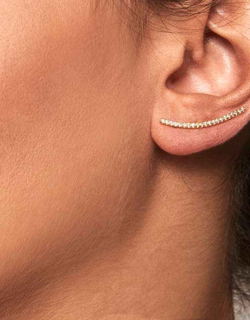 Brilla como los pendientes Amelie Gold. Este nuevo diseño es el must-have que no puede faltar en tu joyero. Una fina línea de circonitas engastadas a mano es el complemento perfecto para lucir en tus orejas.