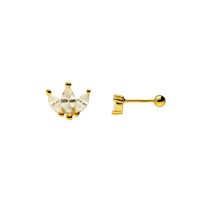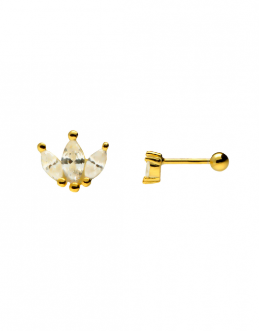 PENDIENTE PIERCING OK SILVER MINI CORONA PLATA CON BAÑO DE ORO 74-3071