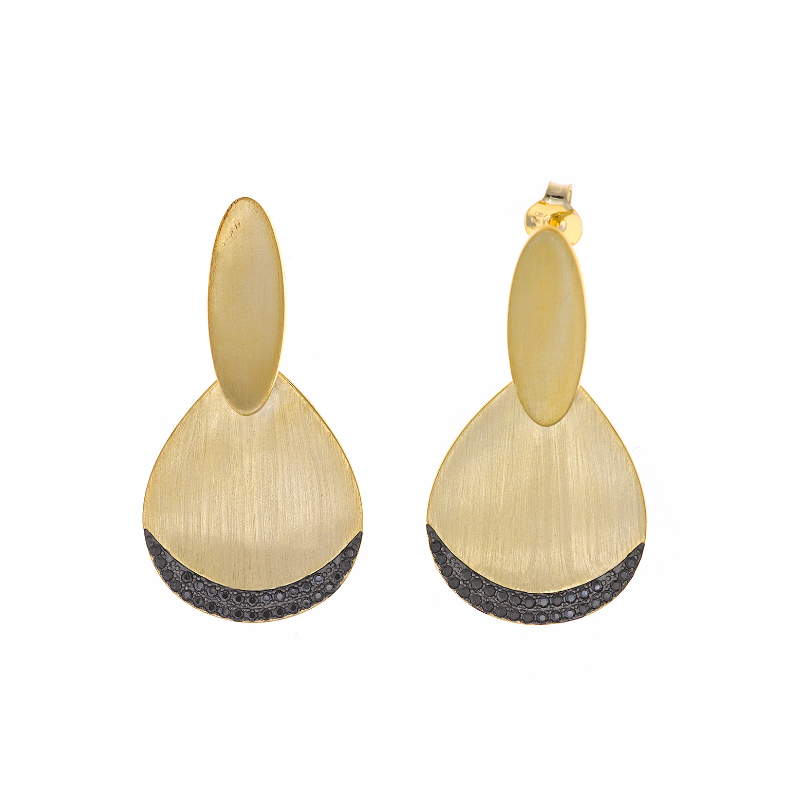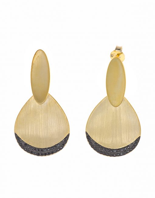 PENDIENTE SALVATORE 151A0109 CHAPADO DORADO OVALO Y PERA MATE CIRCONITAS NEGRAS