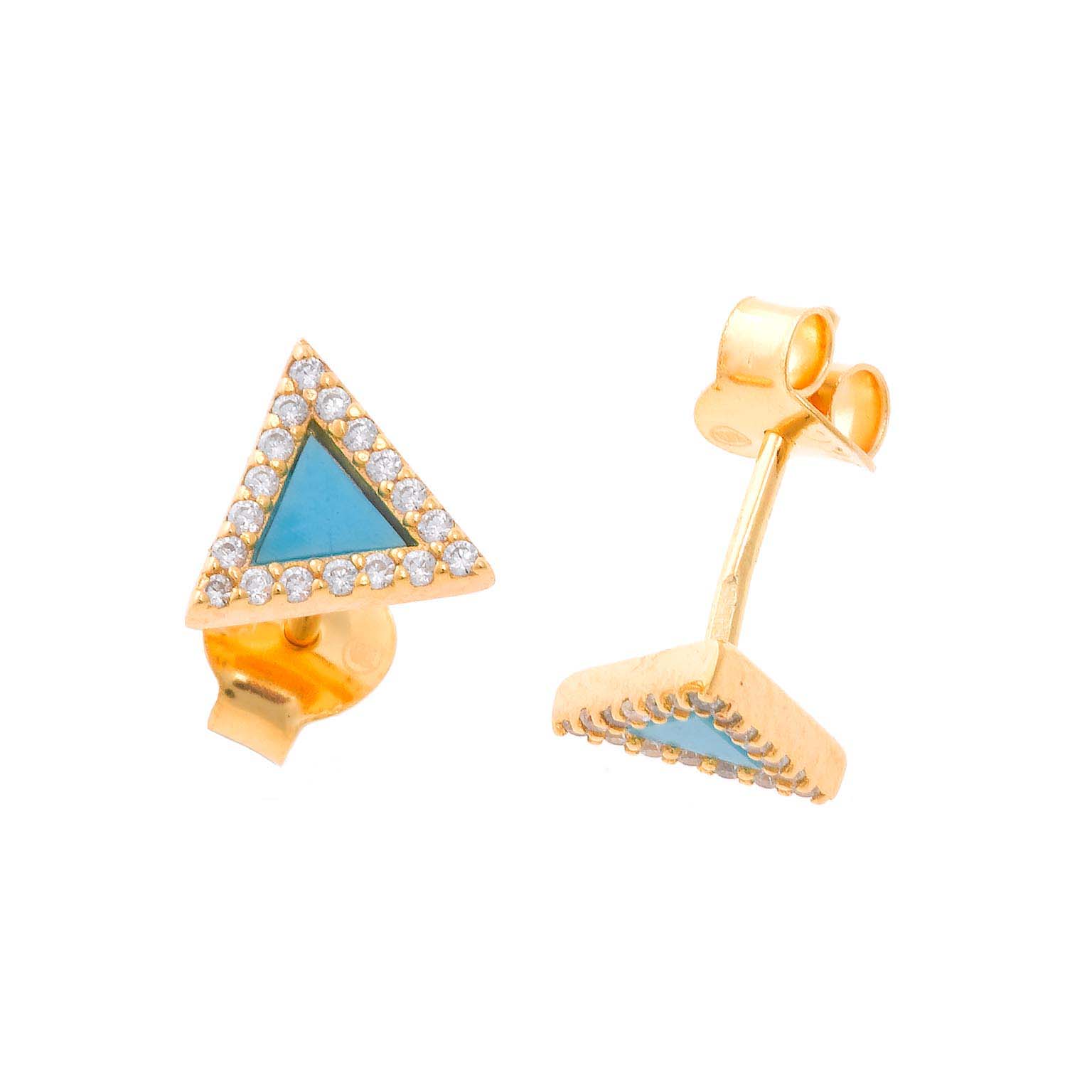 PENDIENTE SALVATORE 229A0004 PLATA CHAPADO DORADO E-COATING TRIANGULO TURQUESA