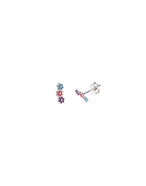 PENDIENTE SALVATORE 266A0038 PLATA RODIO TRES FLORES ESMALTE AZUL Y ROSA