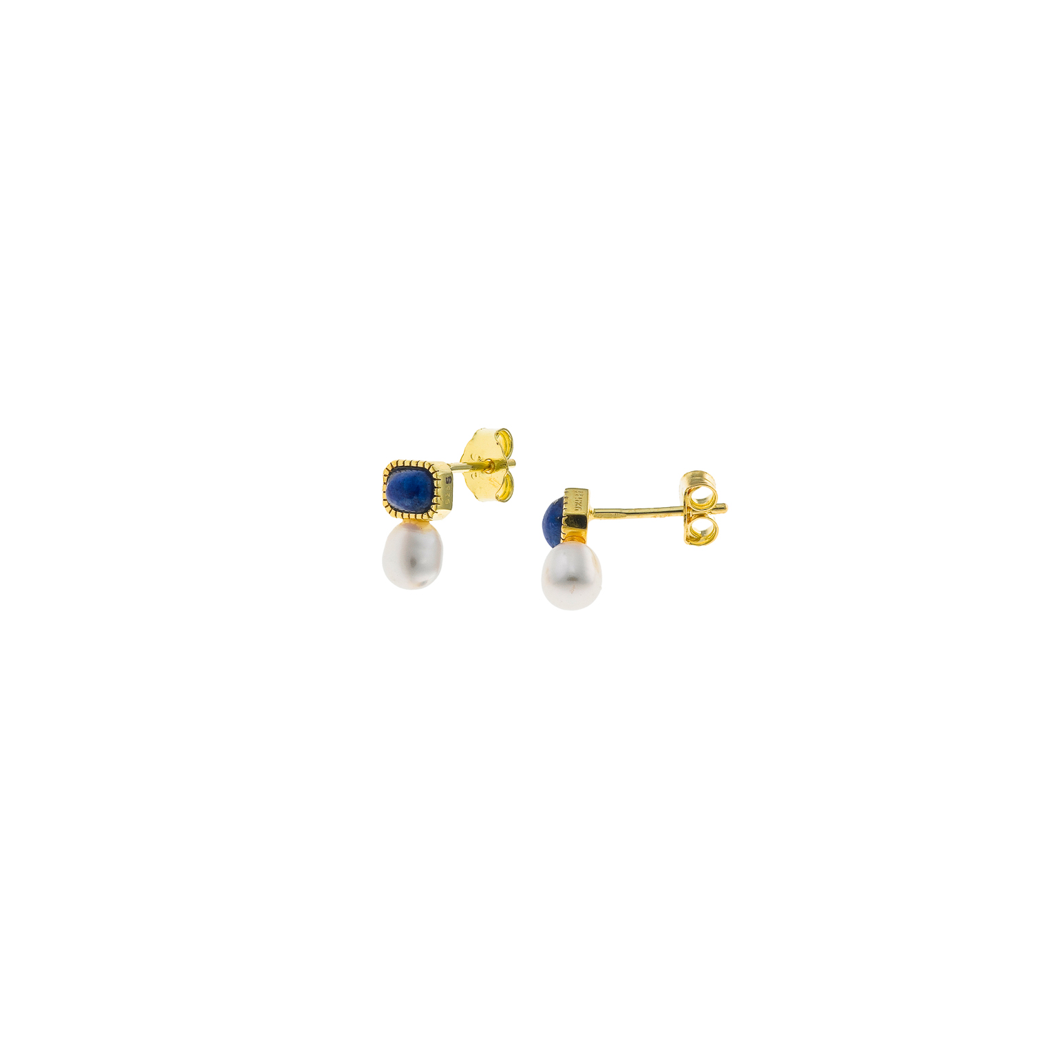 PENDIENTE SALVATORE 272A0054 PLATA CHAPADO DORADO LAPISLAZULI RECTANGULAR PERLA