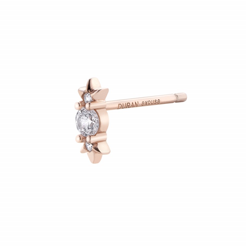 Pendiente Unico Only One, tres circonitas con adorno en los extremos, rosado. Referencia: 00508009