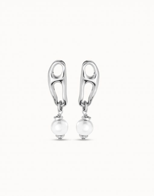 PENDIENTES DE PLATA DOBLE ESLABON Y PERLA. La colección Joyful combina diferentes formas y estilos. Algo que nos permite mezclar y jugar, ser creativos y que disfrutamos en cada paso que damos. Creatividad plasmada en joyas como estos pendientes en forma de doble eslabón con efecto alargado e irregular, de los que depende una perla shell en forma de colgante. Una creación atemporal. Cierre de tuerca con el logo de UNOde50 grabado. Joya Made in Spain, elaborada 100% artesanalmente, consiguiendo así un acabado de diseño único.
