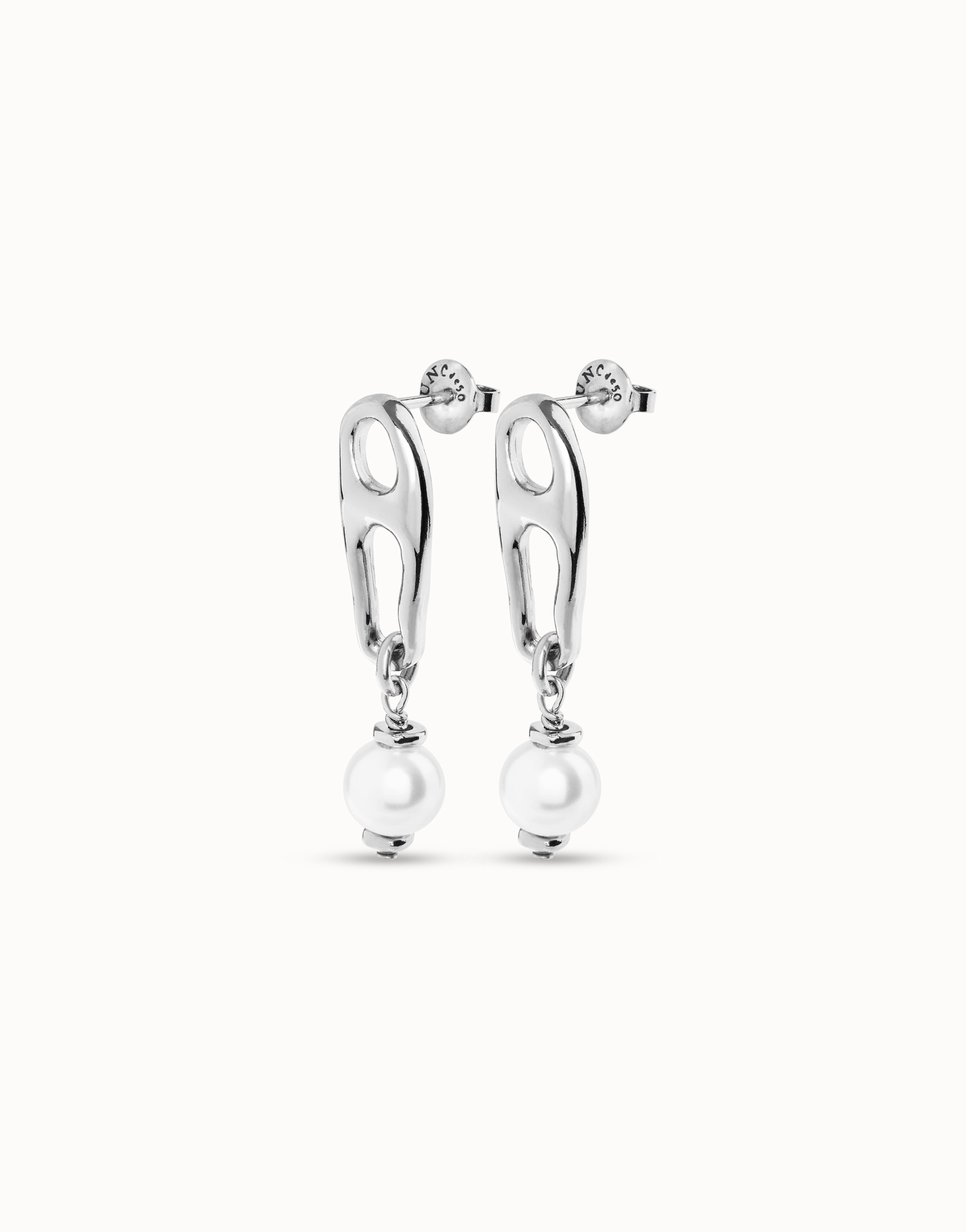 PENDIENTES DE PLATA DOBLE ESLABON Y PERLA. La colección Joyful combina diferentes formas y estilos. Algo que nos permite mezclar y jugar, ser creativos y que disfrutamos en cada paso que damos. Creatividad plasmada en joyas como estos pendientes en forma de doble eslabón con efecto alargado e irregular, de los que depende una perla shell en forma de colgante. Una creación atemporal. Cierre de tuerca con el logo de UNOde50 grabado. Joya Made in Spain, elaborada 100% artesanalmente, consiguiendo así un acabado de diseño único.