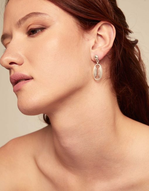 Pendientes de aleación de metales bañados en plata de ley con 1 eslabón mediano Referencia: PEN0936