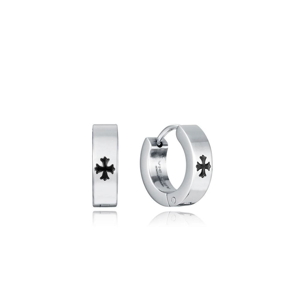 Pendientes de acero para hombre con cruz negra grabada, un accesorio que dará el broche final a cualquier look masculino. En Viceroy hemos diseñado esta joya para atraer las miradas, para añadir un toque de distinción pequeño a la vez que atractivo. Diámetro: 1,3 cm.