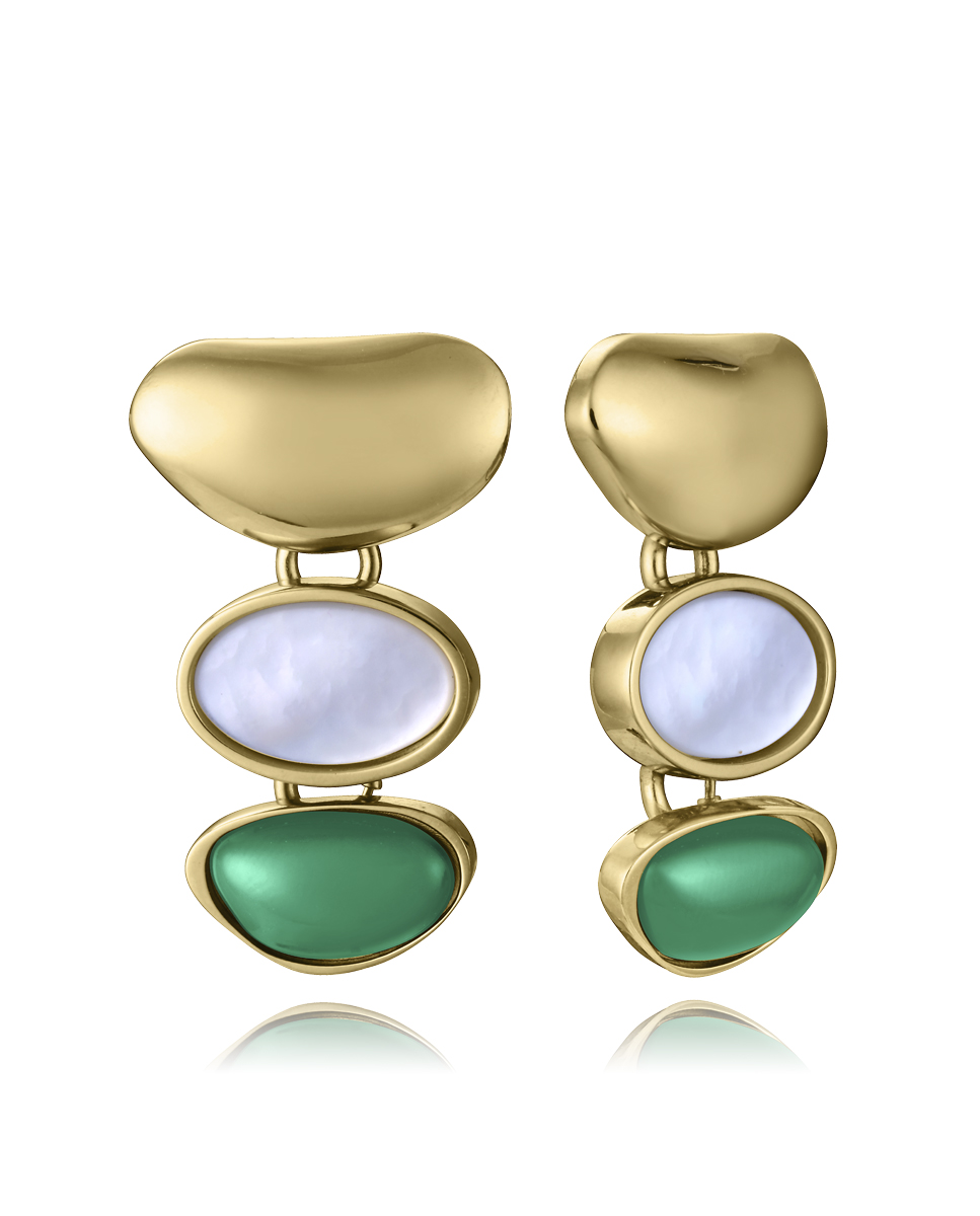 Características Usuario: Mujer Metal: Acero Material Principal: Acero Otros Materiales: Piedra Natural Tipo Piedra: AGATA VERDE Baño / Chapado: IP Dorado Baño / Chapado Sec: IP Dorado Largo / Diametro: 3 CM Color: Multicolor