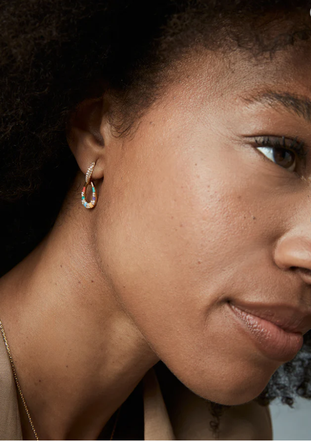 Unos pendientes que irradian elegancia y frescura con cada detalle. Elaborados en plata de primera ley con un delicado baño de oro, presentan un aro adornado con circonitas blancas que aportan un brillo sofisticado. El colgante, con circonitas blancas y esmalte, crea un contraste armonioso, combinando la luminosidad de las piedras con un toque de color vibrante. Con un largo de 2,4 cm, son el accesorio perfecto para realzar cualquier look con sutileza y estilo. Una joya moderna y versátil, ideal para mujeres que buscan un toque de distinción y luminosidad en su día a día.