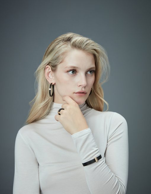 Unos pendientes que fusionan elegancia y modernidad en un diseño audaz. Fabricados en acero con acabados IP negro y dorado, presentan un doble cable unido por una barra central, creando un efecto dinámico y sofisticado. Las circonitas engastadas añaden un toque de brillo luminoso que resalta la pieza con elegancia. Con un diámetro de 4,5 cm, estos pendientes tienen la medida perfecta para destacar con distinción sin perder la ligereza. Ideales para mujeres que buscan un accesorio contemporáneo que combine estilo, versatilidad y un toque de luminosidad. Diámetro 4,5 cm.