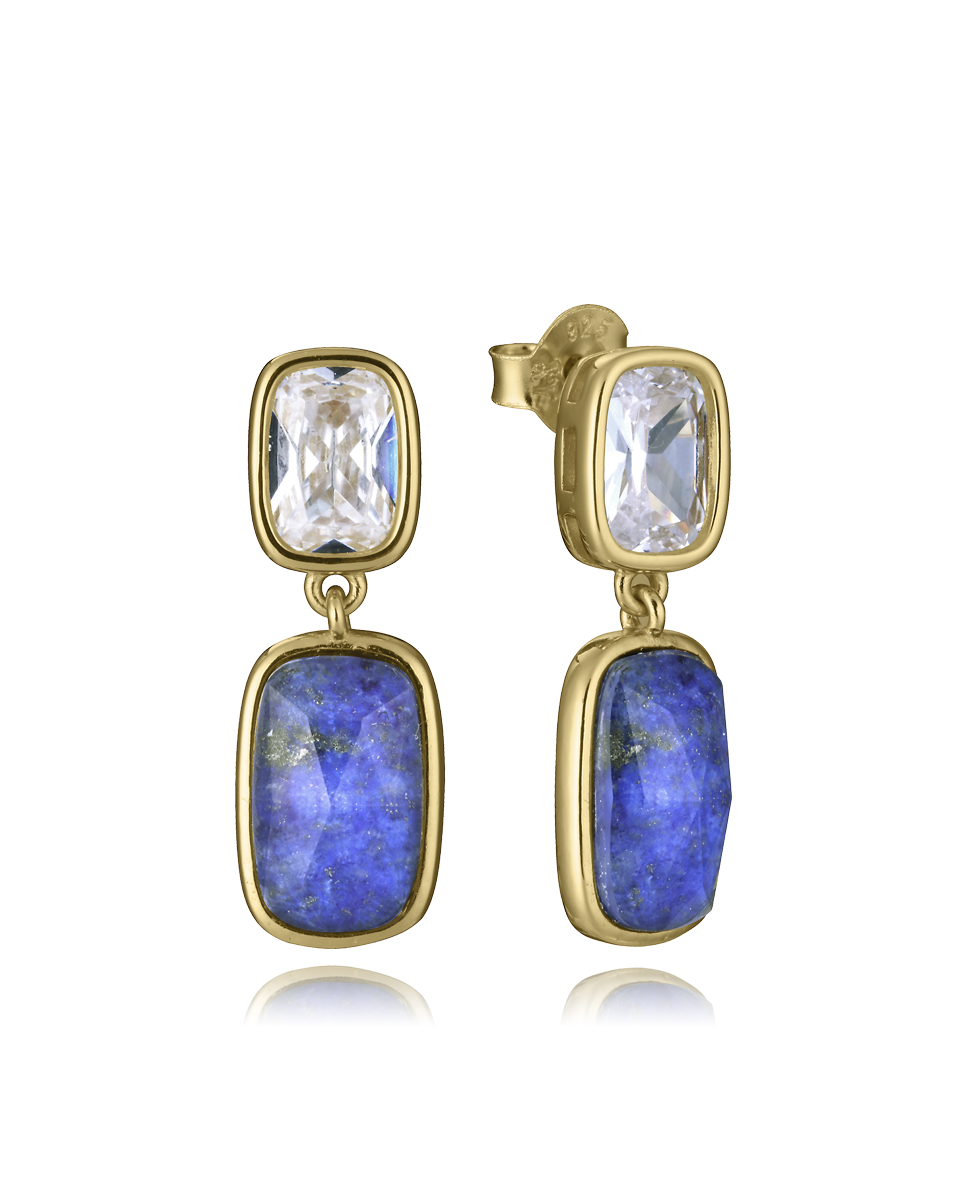 Un diseño que cautiva por su magnetismo y sofisticación. Estos pendientes de plata de primera ley con baño de oro se embellecen con piedras naturales doblete de lapislázuli y cristal, acompañadas por el destello luminoso de circonitas blancas. El azul profundo del lapislázuli evoca misterio, serenidad y fuerza interior, mientras que el dorado realza su carácter elegante y atemporal. Con un largo de 2,2 cm, poseen el equilibrio perfecto entre sutileza y presencia, convirtiéndose en un accesorio versátil para acompañar tanto looks diarios como ocasiones especiales. Una joya que transmite distinción y resalta la personalidad de quien la lleva.