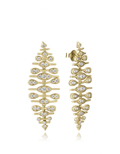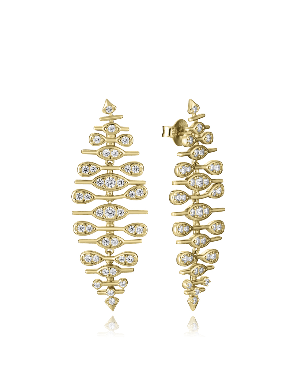Unos pendientes que capturan la esencia de la naturaleza en un diseño elegante y femenino. Elaborados en plata de primera ley con un delicado baño de oro, presentan una forma articulada de hoja que aporta movimiento y sofisticación. Las circonitas blancas engastadas iluminan la pieza con destellos sutiles, creando un efecto refinado y atemporal. Su diseño ligero realza el rostro con frescura, convirtiéndolos en un accesorio versátil que puede acompañar tanto looks diarios como ocasiones especiales. Una joya pensada para mujeres que desean expresar su estilo con un equilibrio perfecto entre delicadeza y distinción. Largo 4,1 cm