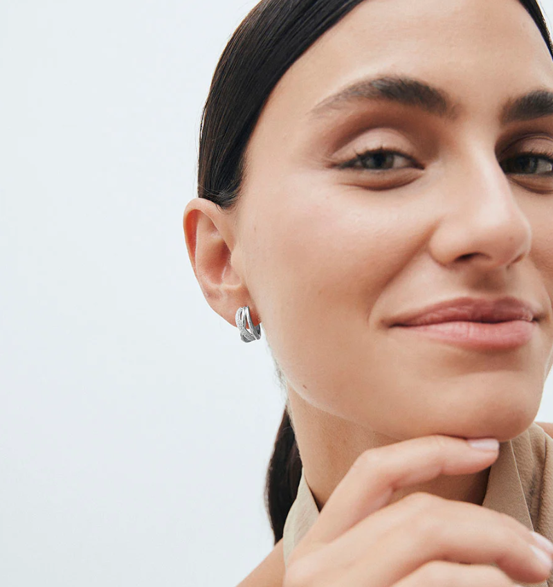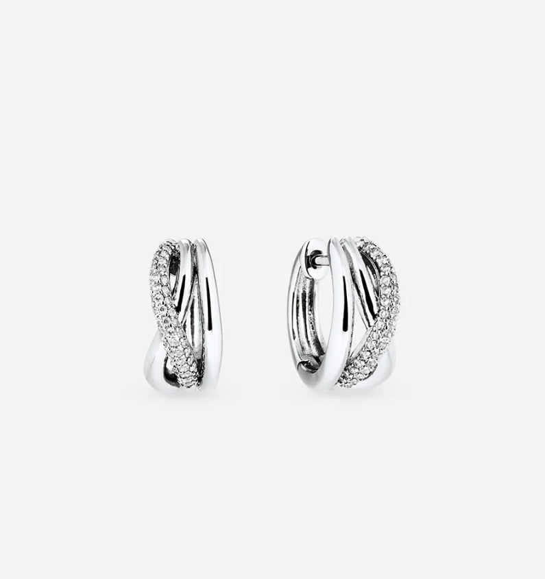 Pendientes de aro entrelazados Duna bañados con un espesor de Plata de Ley 925 de 5 micras o más, garantizando así una mayor durabilidad y brillo prolongado. Engastados con circonitas cúbicas blancas de calidad AAA, cuya similitud con el diamante es casi indistinguible. Tienen una medida de 15 x 8 mm y un cierre de aro articulado. Pertenecen a la colección Esenciales, una selección de pendientes fáciles de llevar y perfectos para el día a día. Ideales para completar cualquier look con elegancia y naturalidad. En la vuelta a la rutina, las joyas adecuadas nos recuerdan que lo cotidiano también puede brillar.