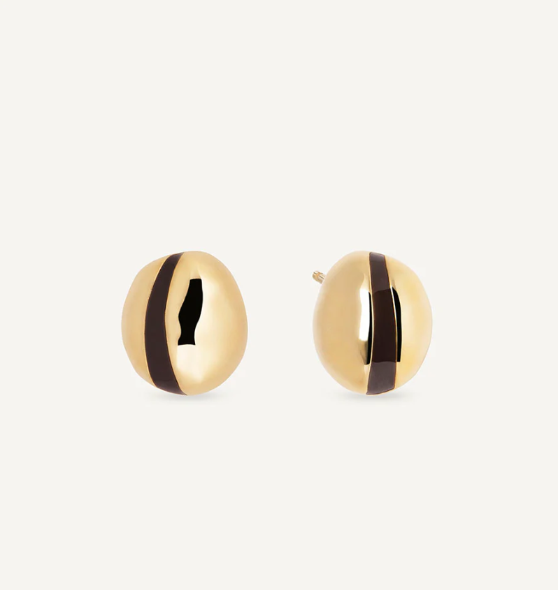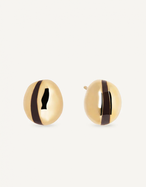 Pendientes gruesos largos Intervalo bañados con una gruesa capa de oro macizo de 18 kt, lo que garantiza una mayor durabilidad. Destacan por la piedra Esmaltes en tono marrón chocolate, color protagonista de la temporada, que aporta textura, brillo y un gesto de estilo propio. Tienen una medida de 47 mm y un cierre a presión.