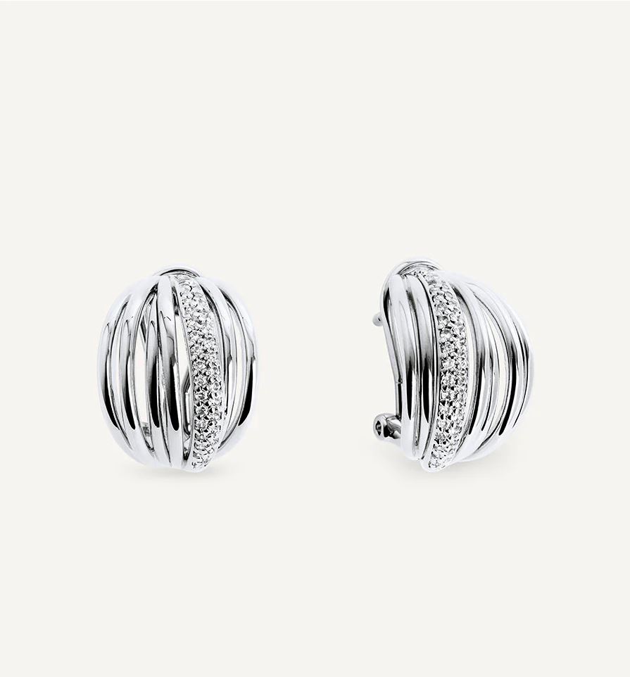 Pendientes semiluna tiras Allure bañados con una gruesa capa de Plata de ley 925, lo que garantiza una mayor durabilidad. Engastados con circonitas blancas, cuya similitud con el diamante es casi indistinguible. Tienen una longitud de 18 mm y un cierre a omega.