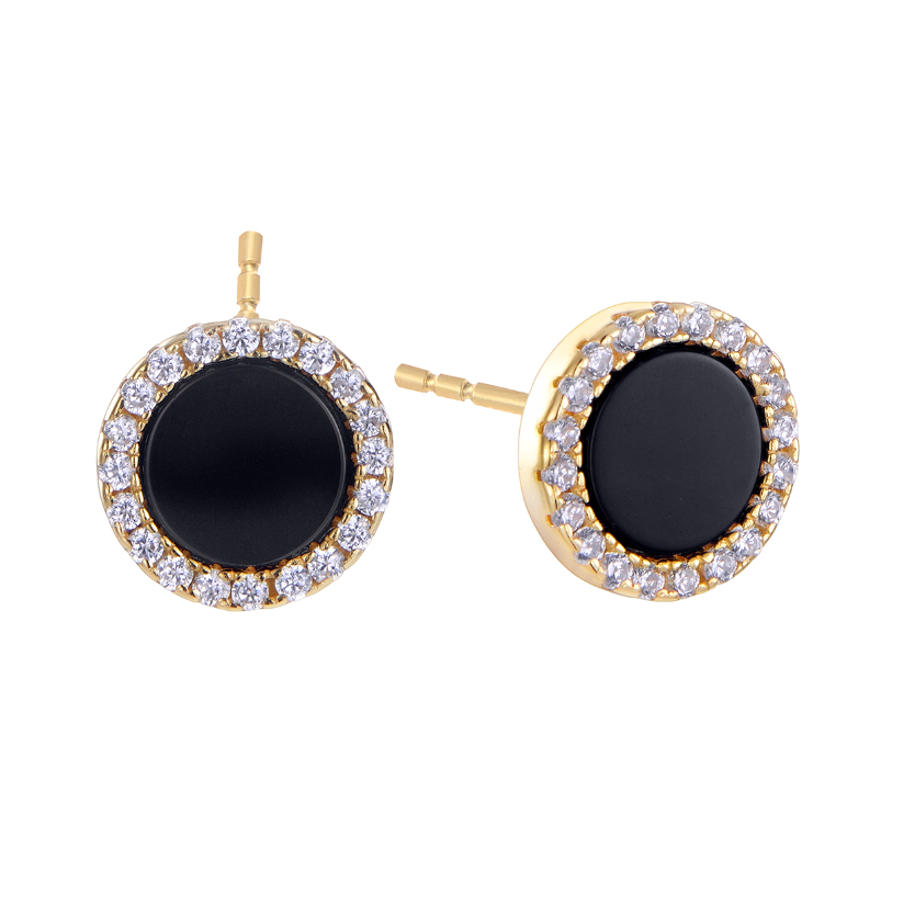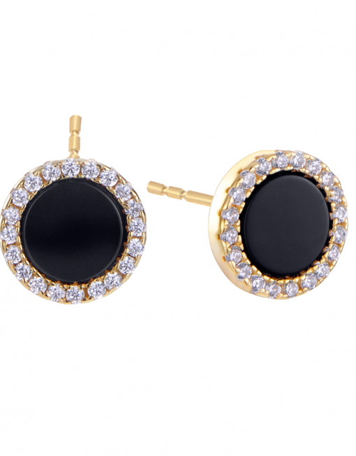 Pendientes de Durán Exquse de la colección Caprichos de plata dorada con onix y circonita