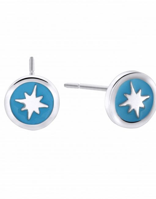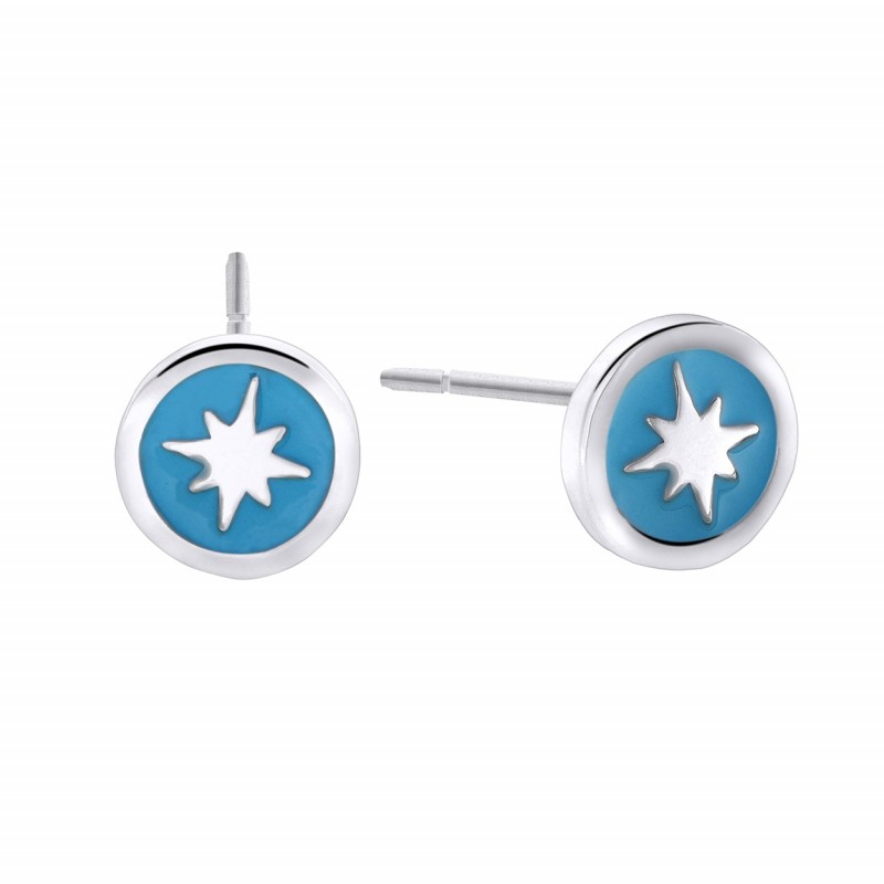 Pendientes Mi Primera Joya, circulo con estrella polar, esmalte turquesa.