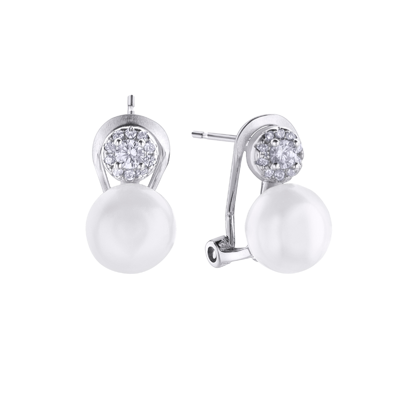 Pendientes de Durán Exquse de la colección Pearl de plata con circonitas y perlas