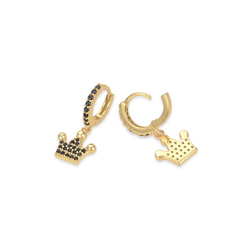 PENDIENTES RYZI Piedras:CIRCONITA ONIX AcabadoBAÑO DE ORO AMARILLO DE 18 QUILATES Medidas:alto: 9.660, largo: 19.750 Peso:1.90 gr. Cierre:ARO HUGGIE Engaste:MICROPAVÉ Tarjeta de colección:OPTIMISMO Material:PLATA DE LEY 925