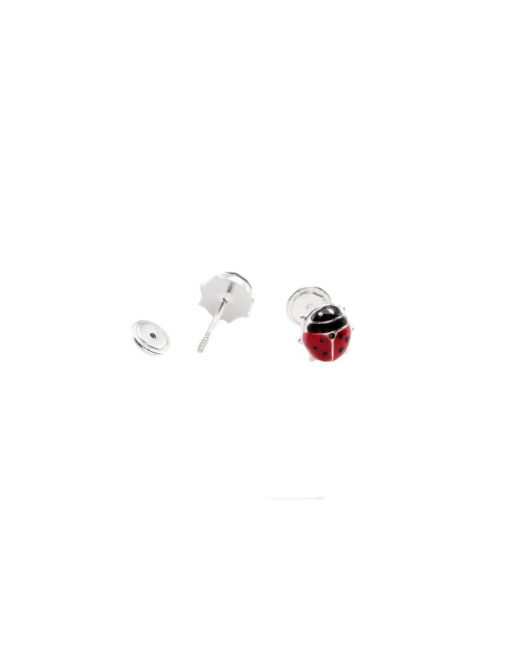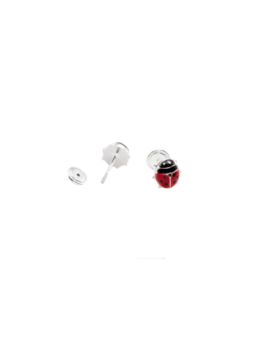 Pendientes de plata de ley 925 motivo mariquita esmaltada con cierre de rosca.