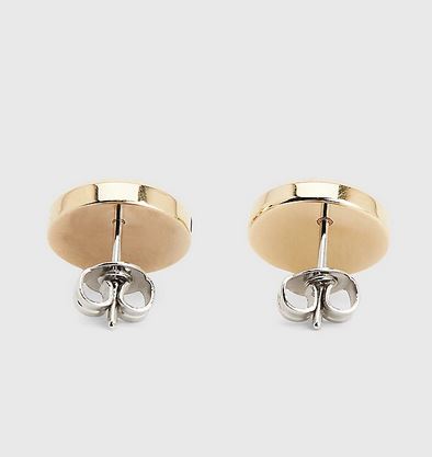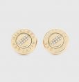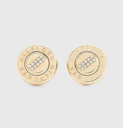 Estos vistosos pendientes de tuerca lucen unos detalles de cristales y un logo elegante grabado en la parte delantera.