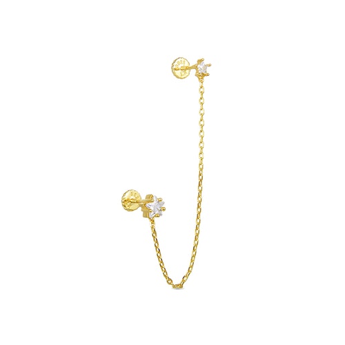 DETALLES PENDIENTES LYKU Piedras:CIRCONITA BRILLANTE AcabadoBAÑO DE ORO Medidas:alto: 5.510, largo: 90.000 Peso:2.22 gr. Cierre:ROSCA Engaste:GARRAS Tarjeta de colección:OPTIMISMO Material:PLATA DE LEY 925