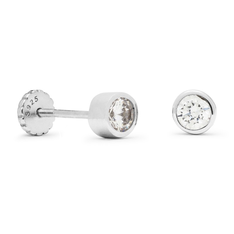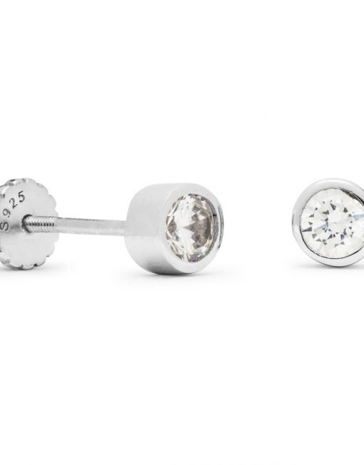Material Plata de Ley 925 Acabado Baño de rodio Piedra Bright zircon Tallado Screw back Engaste Embutido Medidas 5mm alto x 5mm ancho