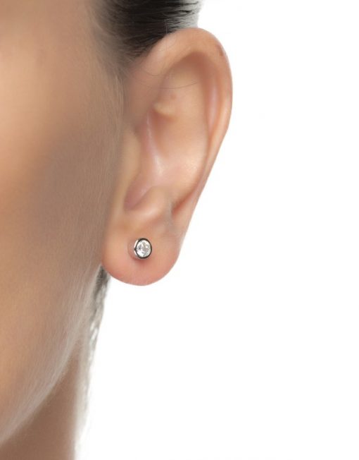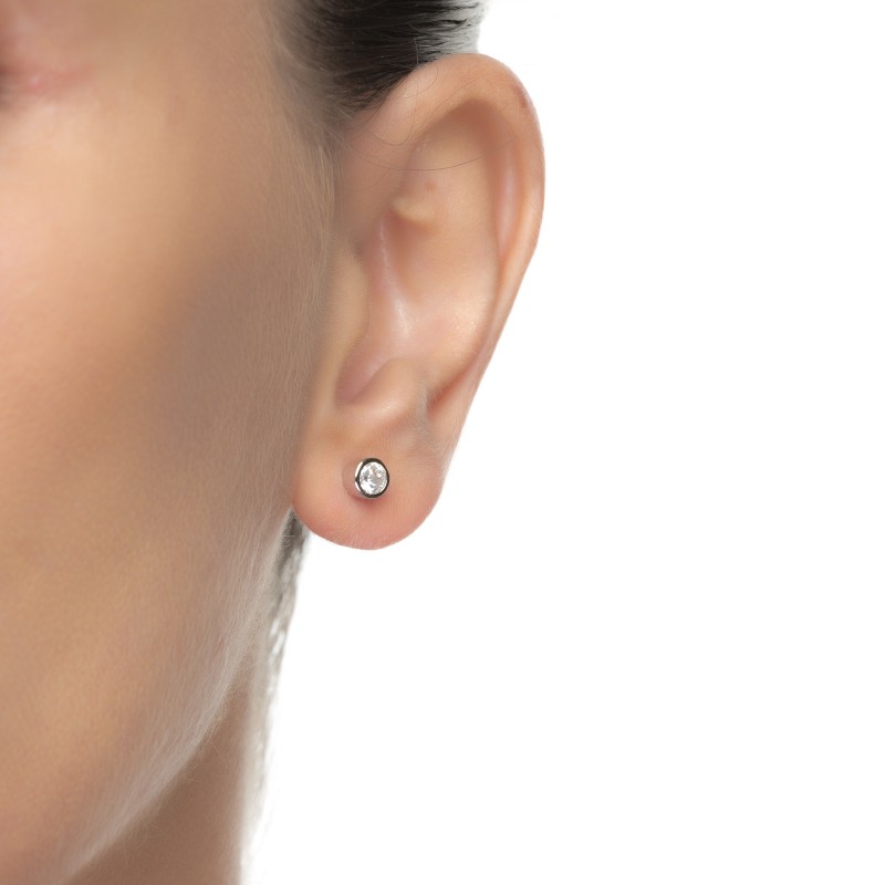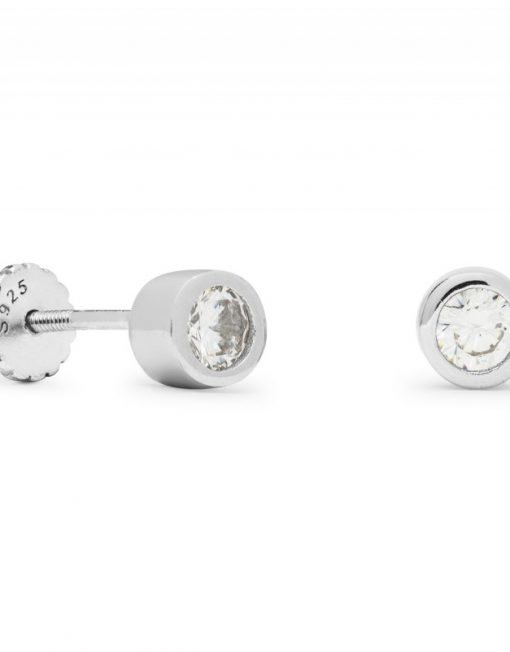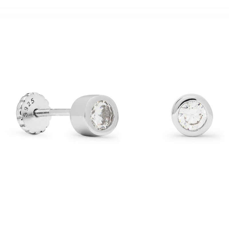 Material Plata de Ley 925 Acabado Baño de rodio Piedra Bright zircon Tallado Screw back Engaste Embutido Medidas 4mm Alto x 4mm Largo x 2,7mm Ancho