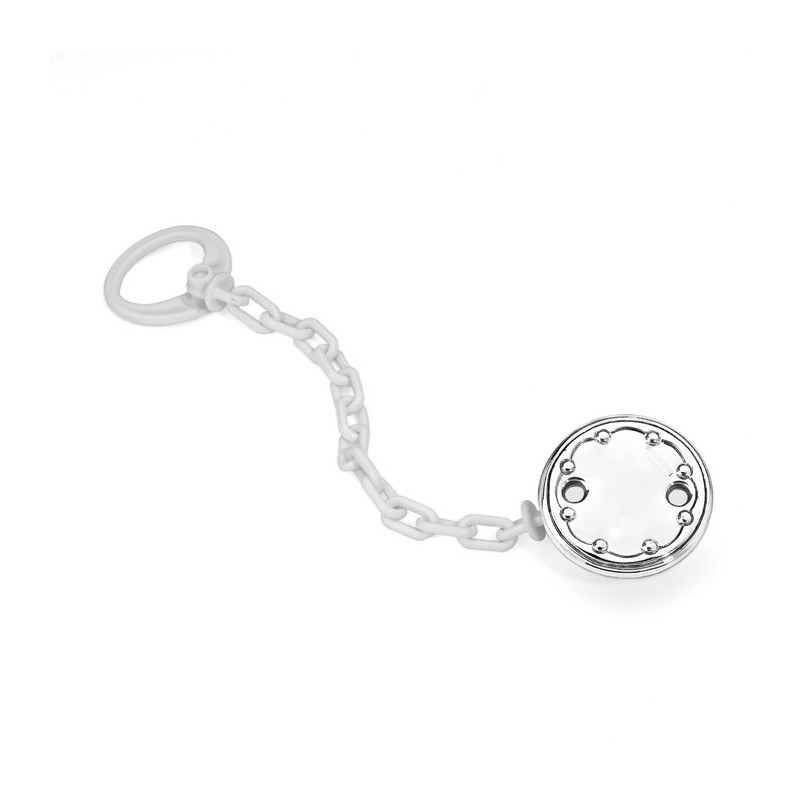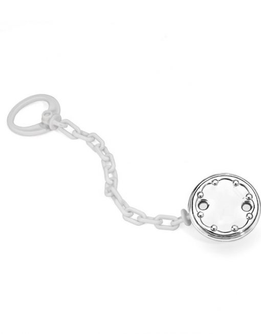 Pinza Chupete Bodoque Blanco Brillo. Realizada por Pedro Durán en plateado.