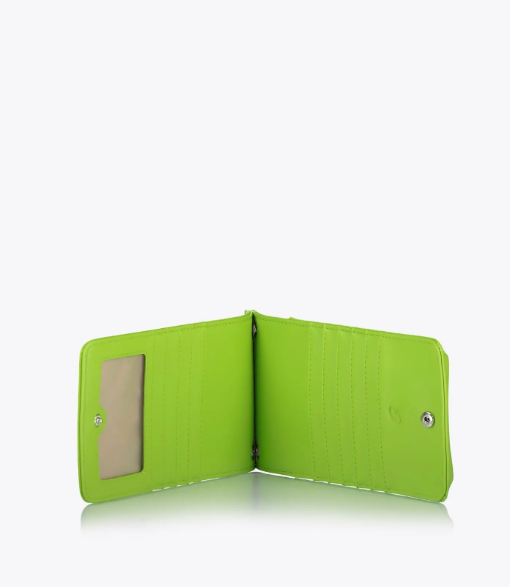 Funda cruzada para teléfono celular con correa ajustable. Tiene varias ranuras para tarjetas y un compartimento con cremallera en la parte posterior para monedas.