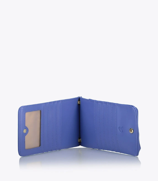 Funda cruzada para teléfono celular con correa ajustable. Tiene varias ranuras para tarjetas y un compartimento con cremallera en la parte posterior para monedas.