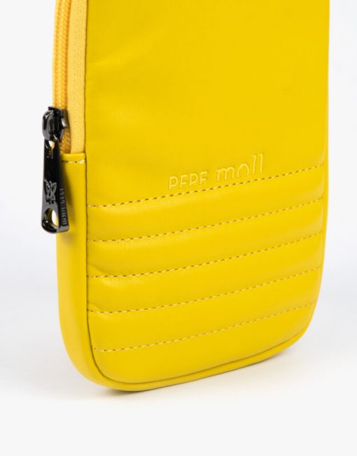 Bolso porta móvil en color amarillo de Pepe Moll. Sin duda se han convertido en un complemento imprescindible en nuestra colección. Si buscas un porta móvil en el que puedas llevar tanto tu móvil como por ejemplo tus llaves o tarjetas, este es el tuyo. Además de por su funcionalidad, su color y sus detalles lo hacen realmente especial. Cuenta con un asa regulable y extraíble, que hace que lo puedas llevar tanto de funda como de bolso.