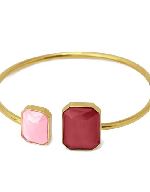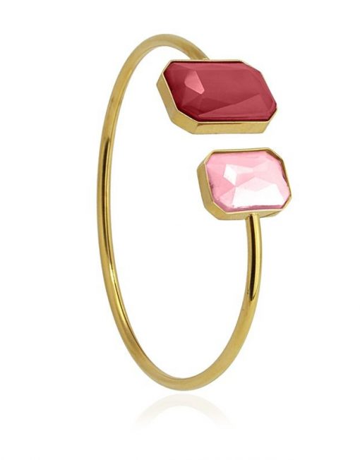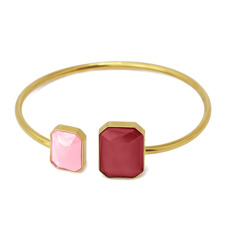Pulsera de acero quirúrgico en dorado con detalles en piedra de cristal coloreada (de 14 y 18 mm).