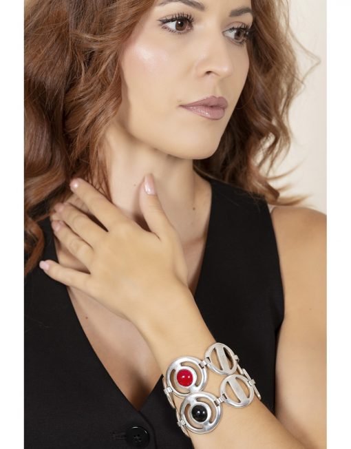 Pulsera de eslabones Estilo bañada en plata de la colección New Cocco de Ciclón inspirada en la icónica diseñadora de moda Cocó Chanel. Diseño de eslabones con motivo central decorado con esfera de murano. Talla única de 17 a 20 cm. Disponible en 5 colores. Cierre T.