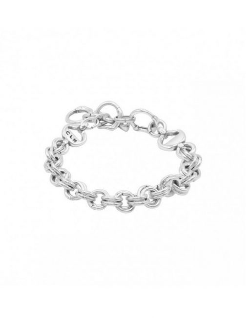 Una pulsera de doble cadena bañada en plata que envuelve la muñeca con un brillo limpio y sereno. El motivo circular aporta equilibrio visual y una sensación de continuidad. Su cierre en T, cómodo y visible, suma carácter al diseño. Combina acabados cuidados y una presencia ligera. Ajustable de 17 a 20 cm, acompaña gestos cotidianos con elegancia natural. Ideal para regalar o para llevar como sello personal.