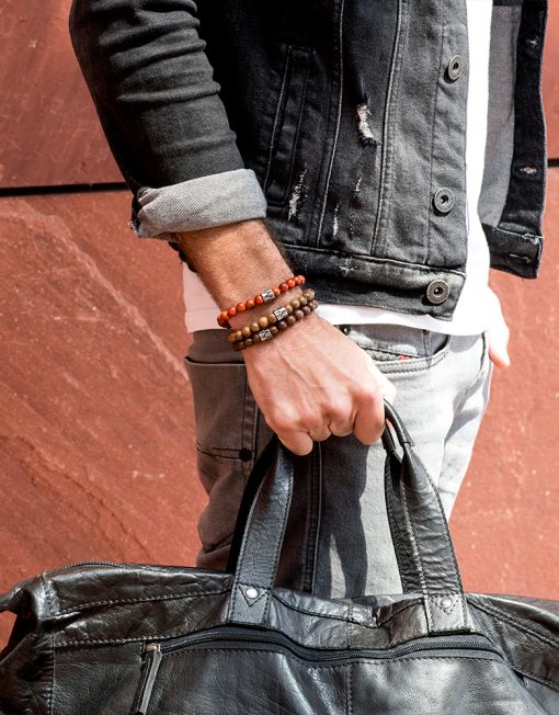 Pulsera de hombre de moda con cuentas de madera y acero de Frank 1967. Estas pulseras pertenecen a la colección Courageous Beads. Elija entre varios colores. ¿Cuál te gusta?