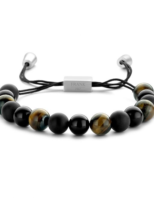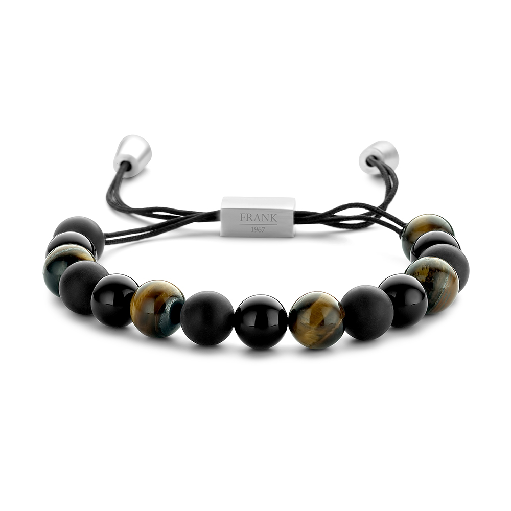 El brazalete está hecho de material de alta calidad como piedras naturales y acero inoxidable. La mezcla de ágata mate y ojo de tigre (8mm) le da a la joya un aspecto resistente. Viene en un tamaño único, tirando de las cuerdas más sueltas y apretadas hasta el tamaño de muñeca deseado. Equipada con un cierre deslizante.