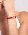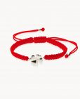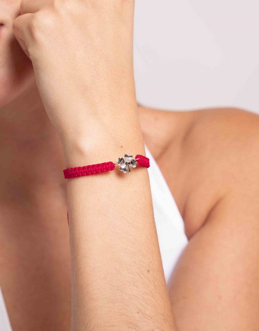 Pulsera de plata de ley 925 bañada en rodio con nylon rojo y motivo trébol de 11 mm x 11 mm (ancho por alto), regulable. Pulseras cómodas y divertidas para llevar en tu día a día.
