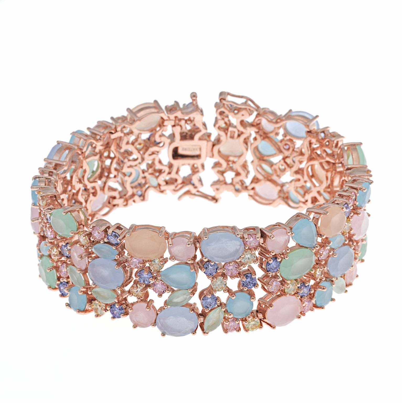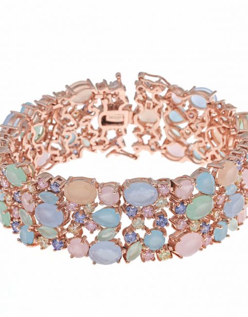 PULSERA SALVATORE PLATA CHAPADO ROSA CRISTALES Y CIRCONITAS MULTICOLOR 18CM 240P0001