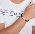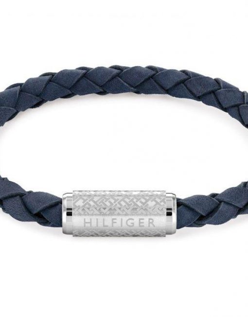 Pulsera Tommy Hilfiger para hombre fabricada en piel trenzada color azul con cierre magnético ajustable en acero inoxidable con el logo de la marca grabado.