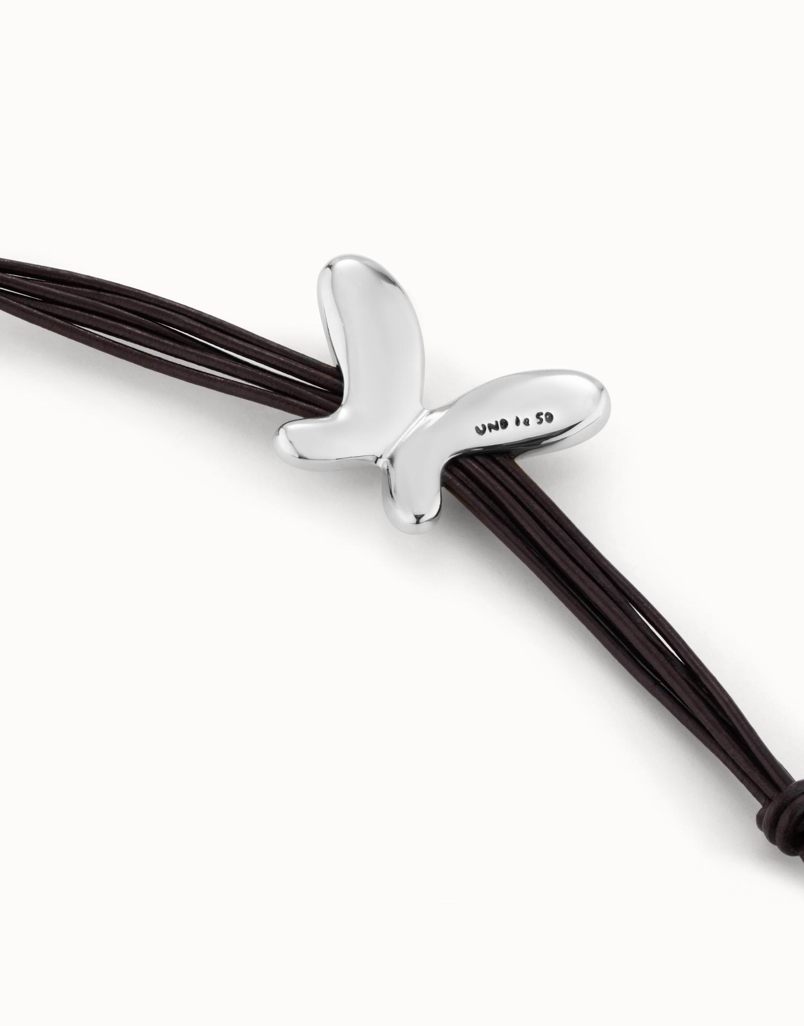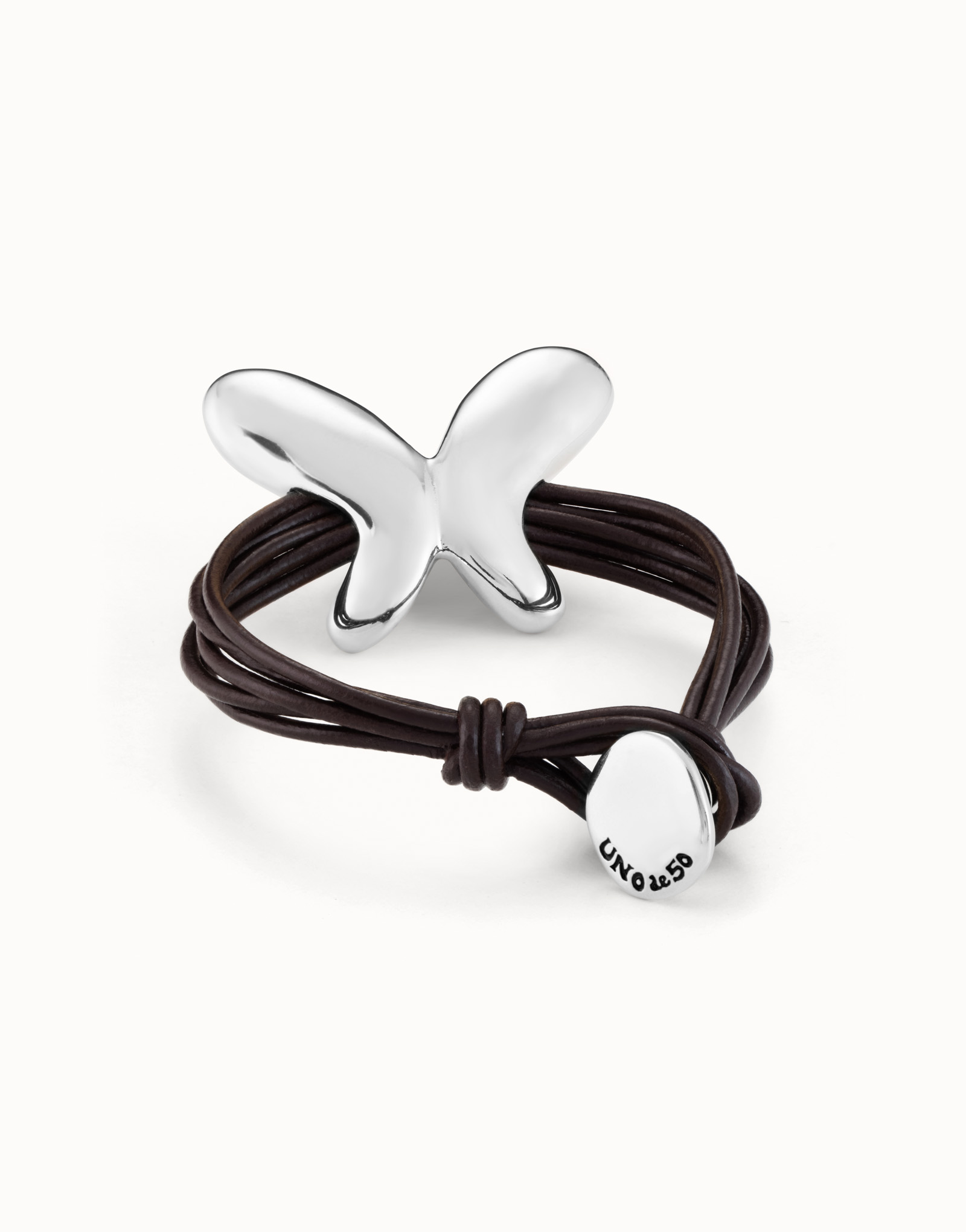 PULSERA DE PLATA Y CUERO Y GRAN MARIPOSA CENTRAL FREE. Inspirada en elementos de la naturaleza siempre presentes en la historia de UNOde50, la colección Free incluye joyas como esta pulsera formada por cinco tiras de cuero y una gran mariposa central de gran formato. Dispone de un elegante y cómodo cierre de botón. Joya Made in Spain, elaborada 100% artesanalmente, consiguiendo así un acabado de diseño único.