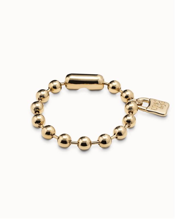 Un clásico con alma dorada. Esta pulsera de bolas bañada en oro de 18 quilates es la definición de elegancia sencilla con un toque diferenciador: el icónico cierre de hormiga de UNOde50.