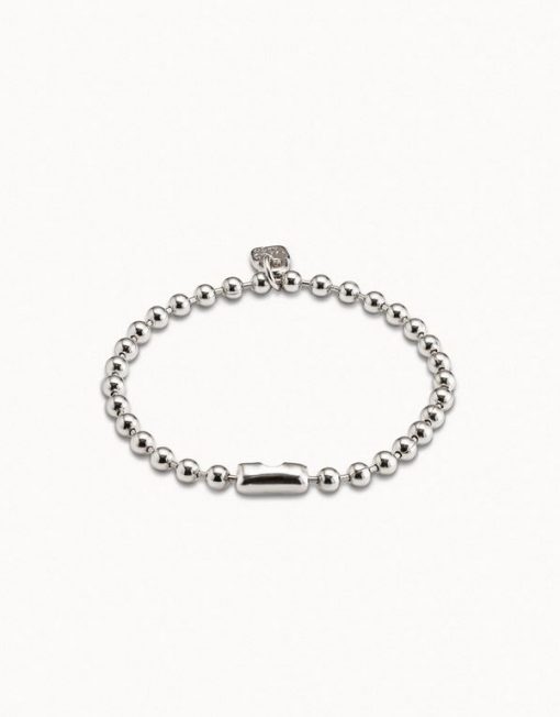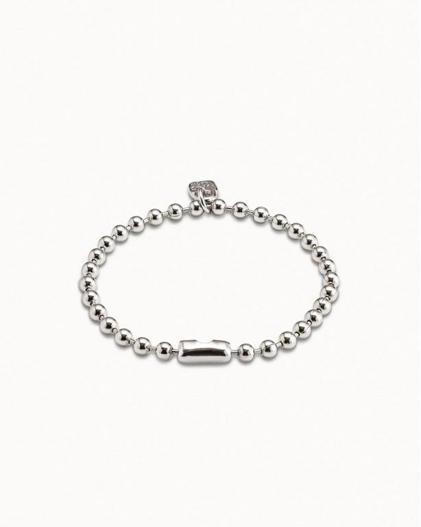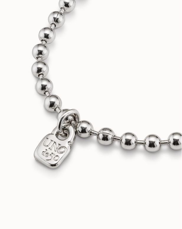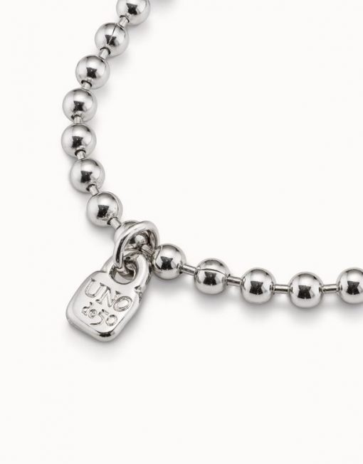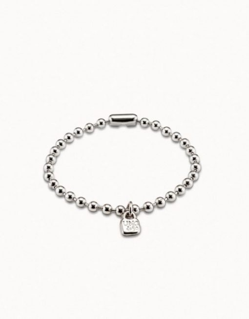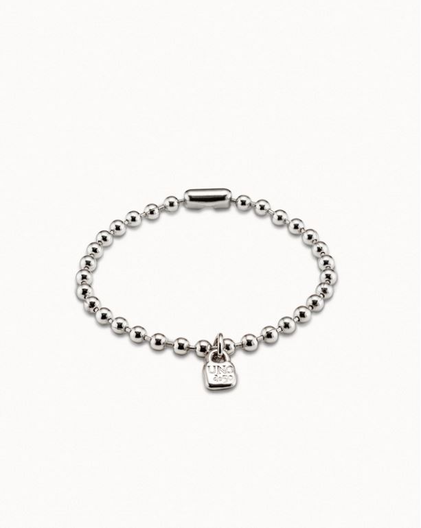 Una joya pequeña, pero con mucha fuerza. Esta pulsera elástica de bolas, bañada en plata, destaca por su diseño minimalista y su charm en forma de candado con el logo de UNOde50: un símbolo de autenticidad, seguridad y estilo propio.