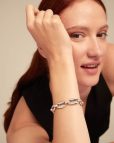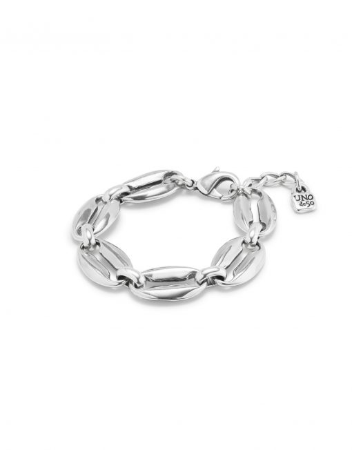 Pulsera de aleación de metales bañado en plata de ley con eslabones ovalados medianos. Referencia: PUL2408